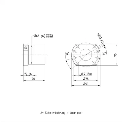 Flanşlı tekli somun FEM-E-B; standart conta ve standart eksenel boşluk ile